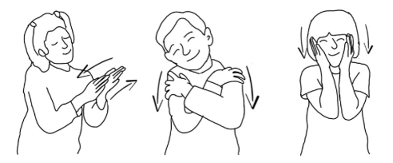 3. Während du diesen Moment visualisierst, streiche sanft deine Hände über Gesicht oder Arme (wie bei den vorherigen Übungen).