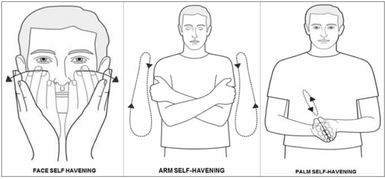 1. Körperliche Berührung: Havening nutzt sanftes Streichen über Gesicht, Arme oder Hände, um das Nervensystem zu beruhigen. Dies wird oft als „havening touch“ bezeichnet.